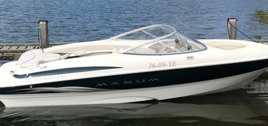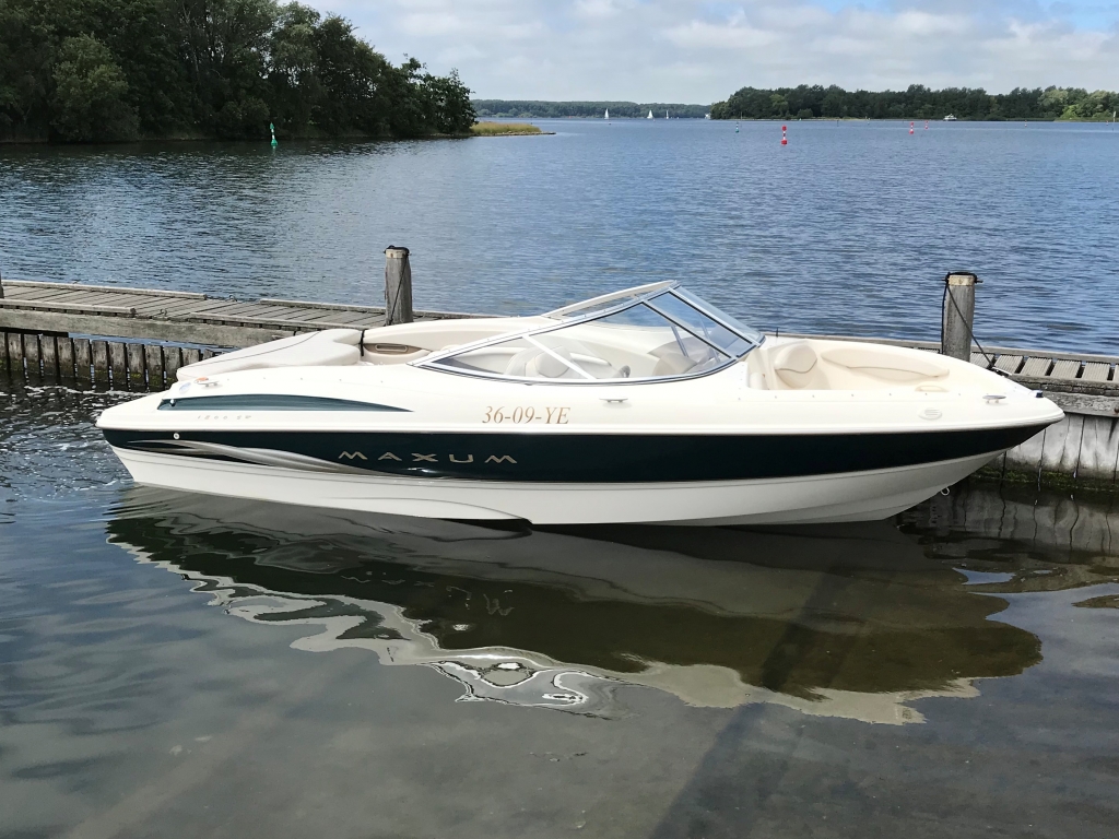 In perfecte staat verkerende 9 persoons MAXUM 1800 SR speedboot uit 2000 compleet met fijne gekeurde Nederlands Freewheel Trailer. deze boot is voorzien van een 3.0 Liter 4 cylinder motor met 140 pk, inboard en gaat rond de 75 km per uur.