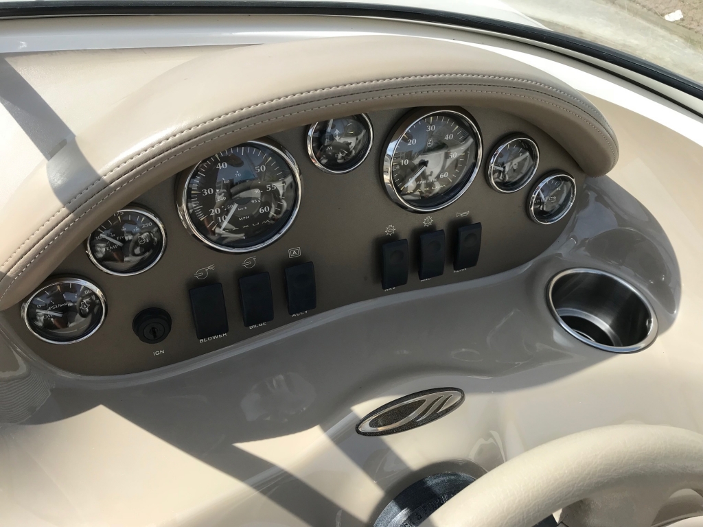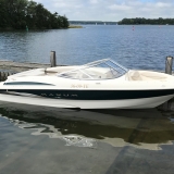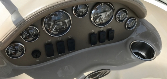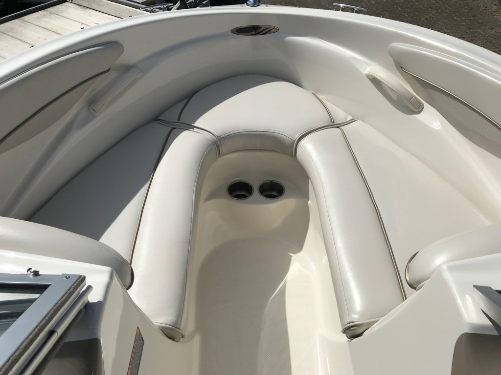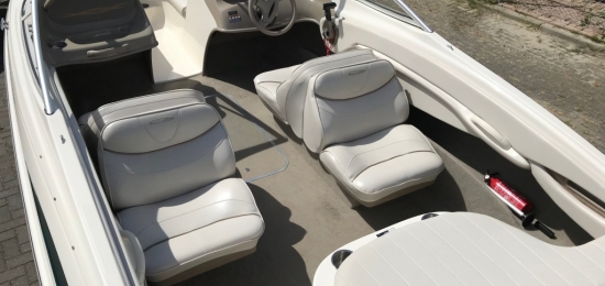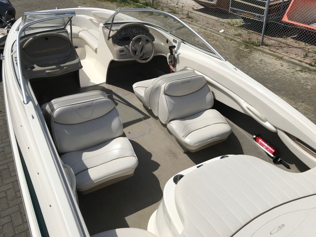 indeling: open bow, dubbele back to back seats die uit te schuiven zijn in 2 zonnebanken, de 2 achter zittingen zijn om te bouwen naar groot zonnedek. Verder met veel extras zoals, luxe dashboard met uren meter, powertrimmeter, toerenteller, enz., chrome bekerhouders, stuurbekrachtiging, groot afdekzeil, cabriokap, geïntegreerde zwemtrap, radio/cd, stootwilgen, zwemplateau, anker, brandblusser, enz.
